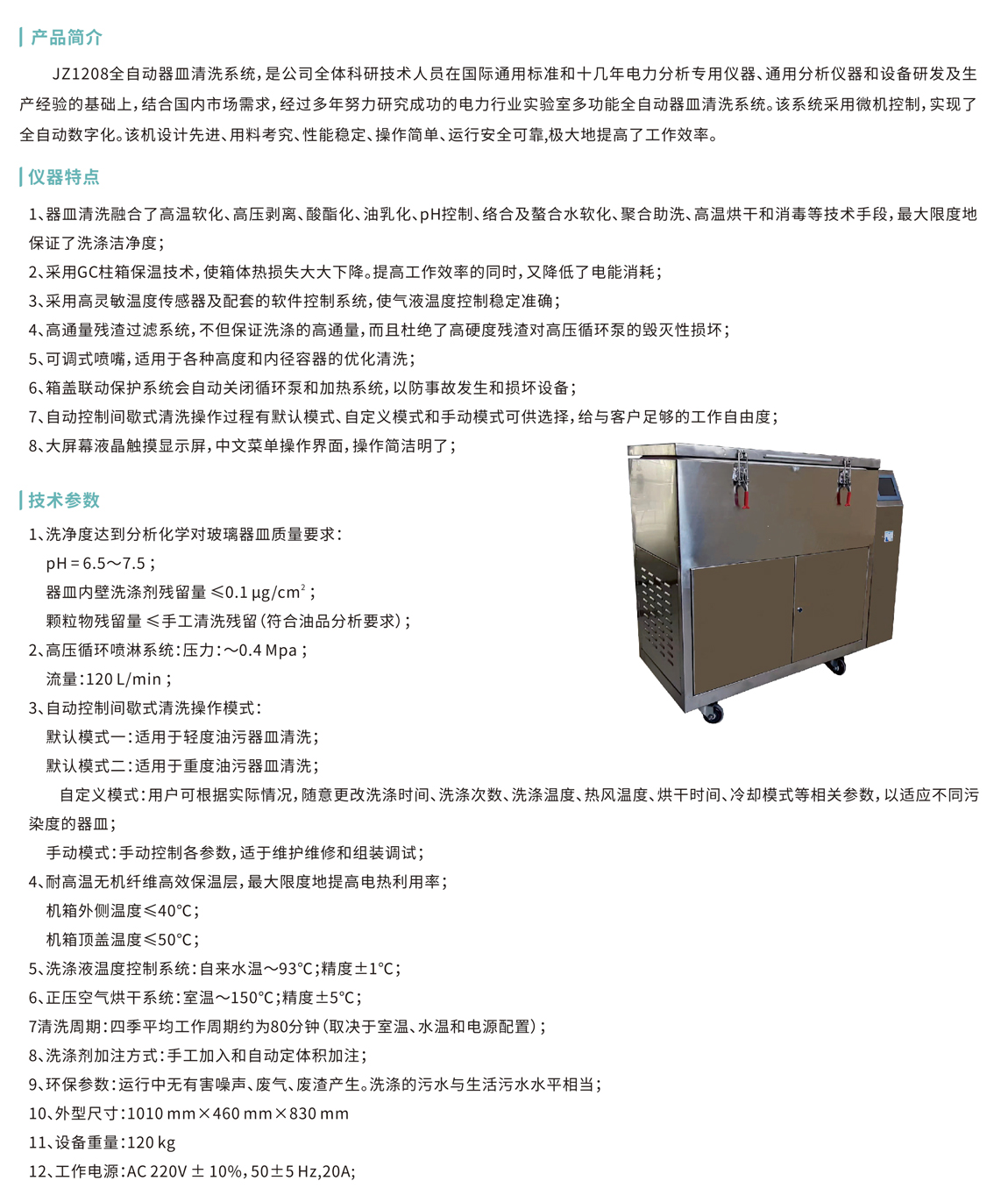 JZ1208全自動(dòng)器皿清洗系統(tǒng),是公司全體科研技術(shù)人員在國(guó)際通用標(biāo)準(zhǔn)和十幾年電力分析專用儀器、通用分析儀器和設(shè)備研發(fā)及生