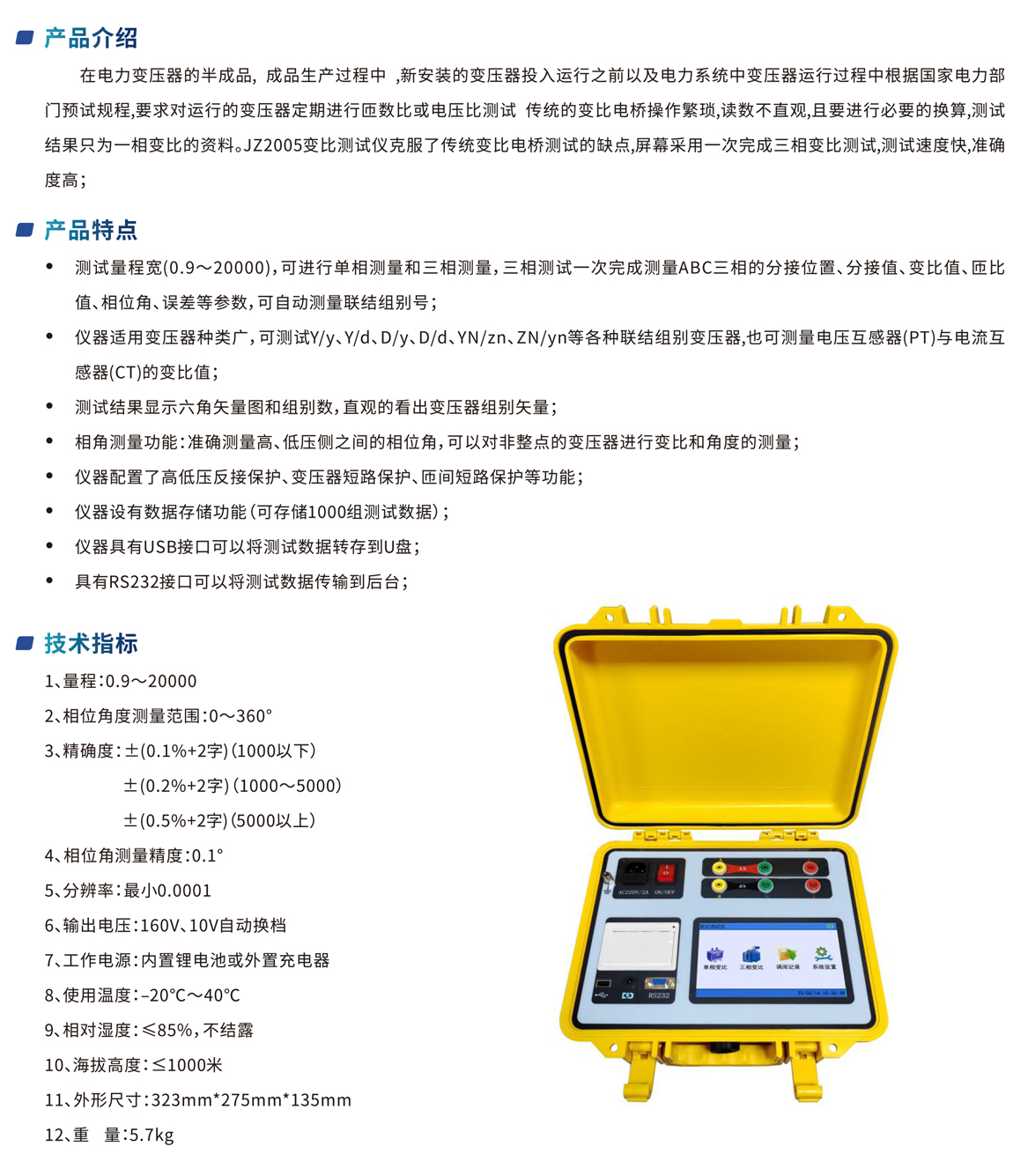 結果只為一相變比的資料。JZ2005變比測試儀克服了傳統(tǒng)變比電橋測試的缺點,屏幕采用一次完成三相變比測試,測試速度快,準確