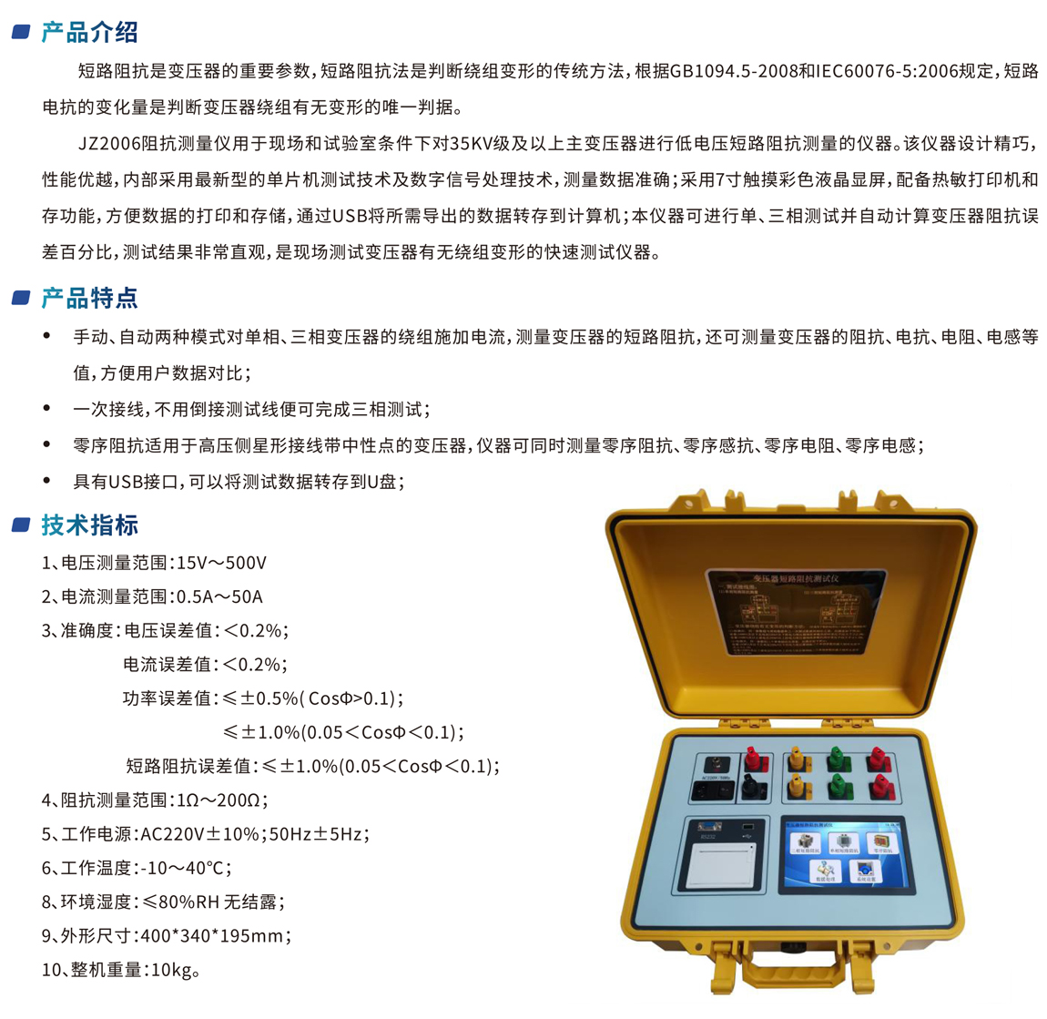 短路阻抗是變壓器的重要參數(shù),短路阻抗法是判斷繞組變形的傳統(tǒng)方法,根據(jù)GB1094.5-2008和1EC60076-5:2006規(guī)定,短路 電抗的變化量是判斷變壓器繞組有無(wú)變形的唯一判據(jù)。