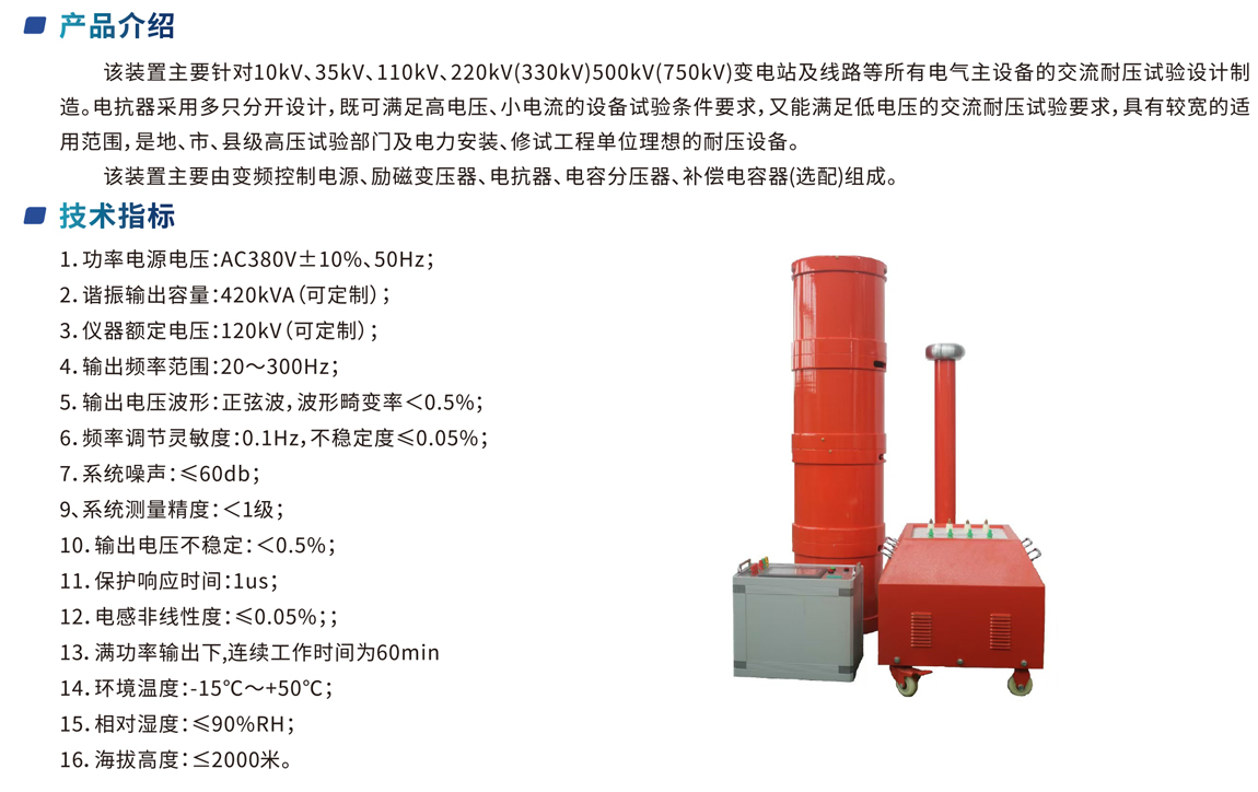 該裝置主要針對10kV、35kV、110kV、220kV(330kV)500kV(750kV)變電站及線路等所有電氣主設(shè)備的交流耐壓試驗設(shè)計制